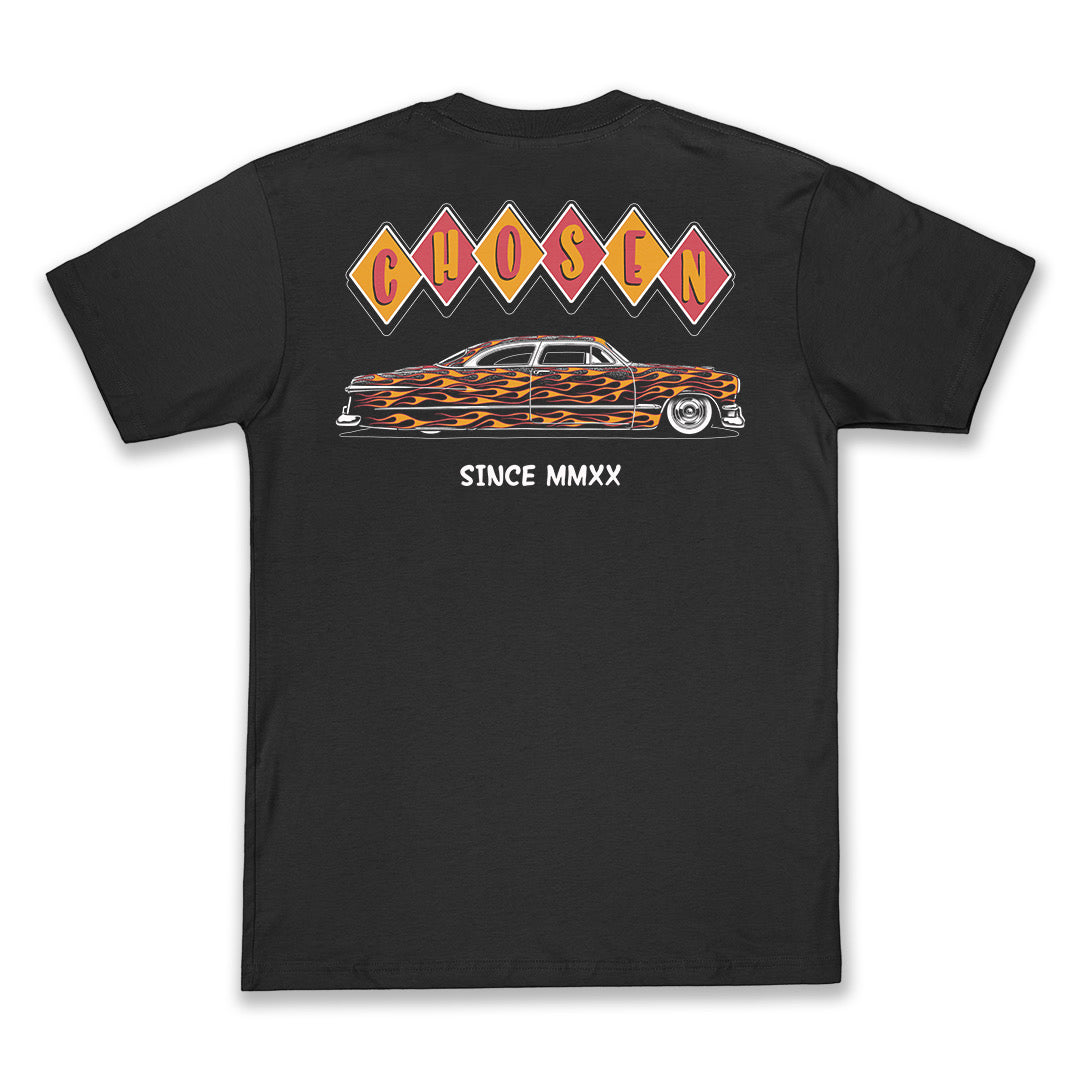 Black Tee with White, Red, and Black Graphic
